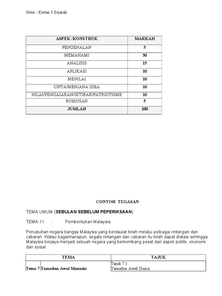 Tema Umum Sejarah Kertas 3 Spm 2020