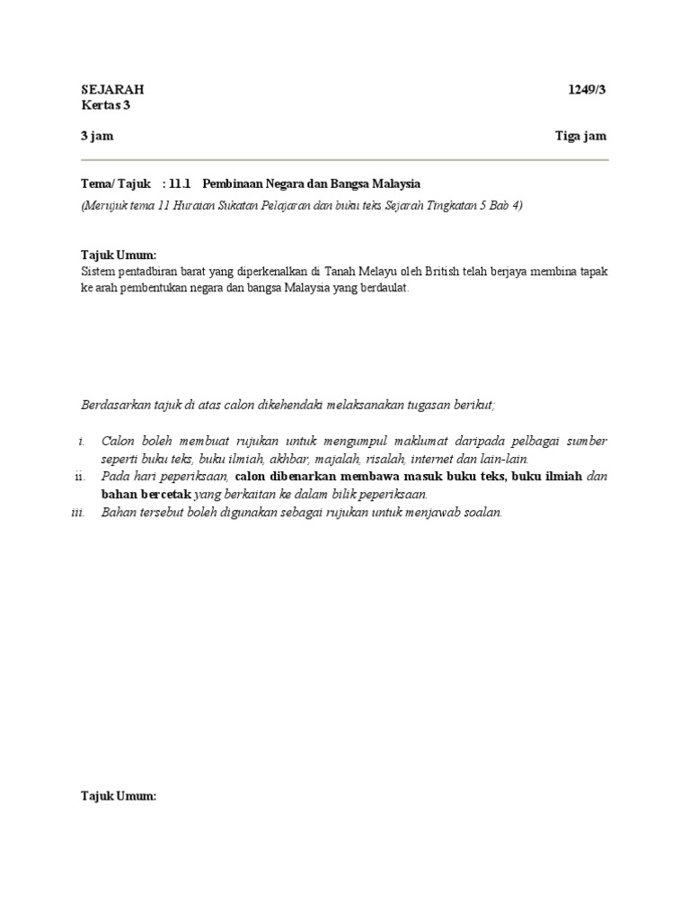 Tema Umum Sejarah Kertas 3 Spm 2021 Spmu Tajuk Arahan Calon